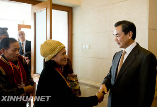 12月22日,王毅與臺(tái)灣少數(shù)民族代表人士訪問團(tuán)成員握手。新華社記者 金良快 攝