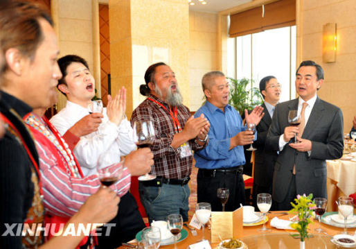 當(dāng)日,中共中央臺(tái)辦、國務(wù)院臺(tái)辦主任王毅會(huì)見并宴請(qǐng)來北京出席“臺(tái)灣少數(shù)民族歷史文化展”的臺(tái)灣少數(shù)民族代表人士訪問團(tuán)。新華社記者 金良快 攝