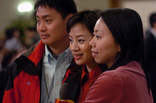 3月18日上午十一屆全國人大一次會議閉幕后,國務院總理溫家寶在人民大會堂三樓中央大廳與采訪十一屆全國人大一次會議的中外記者見面并回答記者提出的問題。圖為記者們在合影。新華網 陳競超 攝
