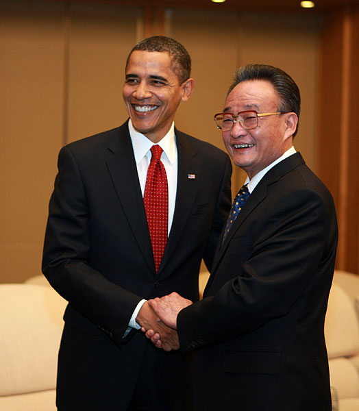 11月17日,中國全國人大常委會委員長吳邦國在北京人民大會堂會見美國總統(tǒng)奧巴馬。 新華社記者鞠鵬攝