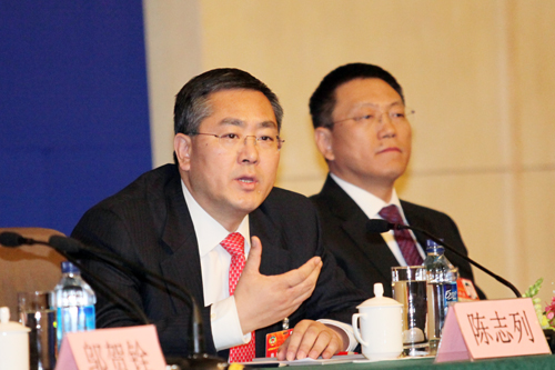 全國政協委員馬大龍、鄔賀銓、尹卓、陳志列、徐冠巨、郭為出席記者會,并回答記者提問。
