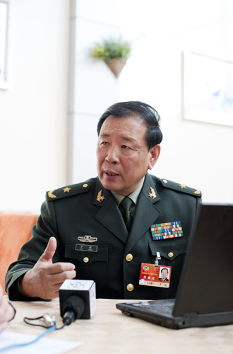全國政協委員羅援正在接受采訪。(攝影 肖春陽 閆文)