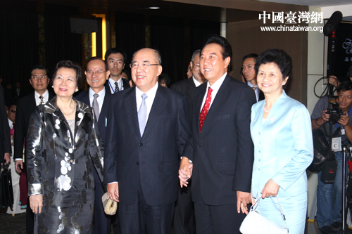 宴會開始前,吳伯雄伉儷在宴會廳入口親迎陳云林伉儷。(田云鵬 攝)