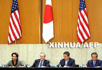 在美日共同聲明亞太地區12項共同戰略目標中,有三項直接與中國相關。聲明首次將涉及中國國家主權、領土完整和國家安全的臺灣問題列入其中。盡管布什政府官員解釋說,由于"顧慮"到中國方面的感受,聲明內容的語調已"有所緩和"。而日本外務省發言人高島肇久20日就日美共同聲明涉及臺海問題一事也稱,日本"無意激怒"中國。而既惦念朝核問題又欲插足臺海問題的美日,為減緩可能激起的大陸的不滿,僅僅是在聯合聲明中玩了一把文字游戲。(全文進入)
