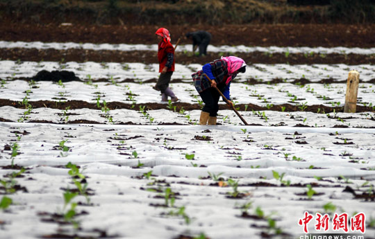近日,云南旱區(qū)普降雨水,全省各地抓住有利時機開展大春播種。截至目前,云南省已投入拖拉機、抽水機等各類農(nóng)機具100萬臺套,機耕機耙面積1200多萬畝,比去年同期增20%,澆灌面積1300萬畝,春播面積1208.9萬畝。圖為云南曲靖煙農(nóng)正在移栽煙苗。中新社發(fā) 田洪 攝
