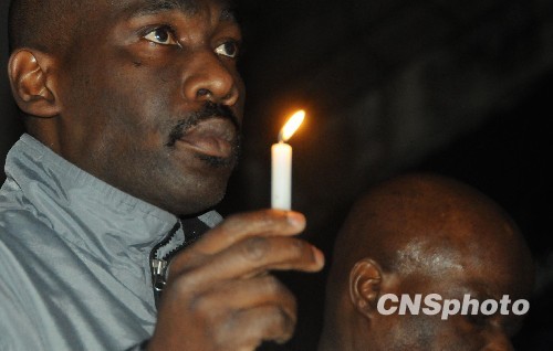 當地時間1月18日,旅美海地人在海地駐美使館外舉行燭光守夜活動,以悼念海地地震中的遇難同胞。