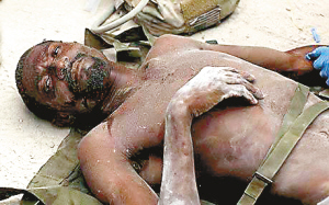 路透社記者描述道,當美國第82空降師在太子港市中心救出這名男子時,他滿身灰塵,只穿著一條內褲。