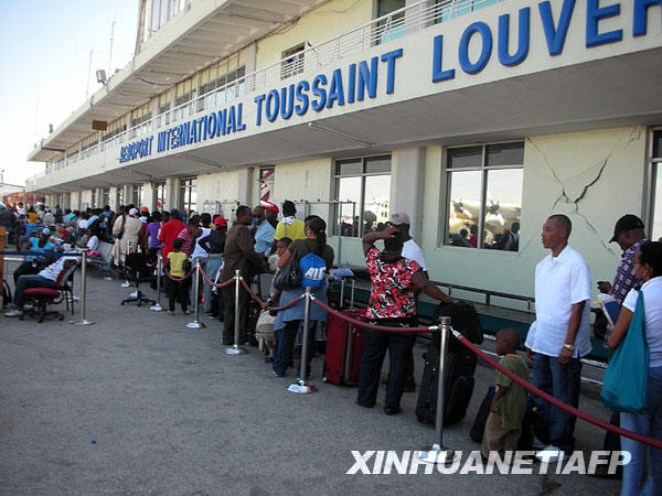 1月17日,人們在海地首都太子港機場排長隊等候乘飛機離開。當?shù)貢r間1月12日,海地發(fā)生里氏7.3級地震,造成重大人員傷亡。新華社/法新