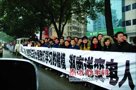 昨日,數(shù)萬市民自發(fā)地從四面八方匯集到羅海文、羅長(zhǎng)明、周景華三位烈士靈車經(jīng)過的路上,懷著萬分悲痛的心情向三位英雄作最后的道別。