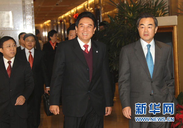 12月20日,海協(xié)會會長陳云林率海協(xié)會協(xié)商代表團離京赴臺,參加21日在臺北舉行的兩會領(lǐng)導(dǎo)人第六次會談。中共中央臺辦、國務(wù)院臺辦主任王毅在北京首都國際機場為陳云林送行。新華社記者汪永基攝