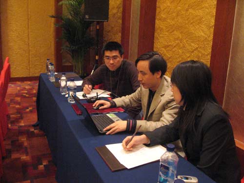 在每個討論組,都有這樣的小組秘書,他們工作比較瑣碎,除了每天至少提前半個小時到達會場外,還負責討論記錄、制作簡報、發放材料、處理記者采訪邀約,及時發布活動通知等。
