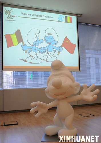 新華網布魯塞爾3月10日電(記者 尚軍 王一凡)上海世博會比利時歐盟館的官方吉祥物——中國人所熟知的可愛藍精靈,10日在布魯塞爾正式亮相。