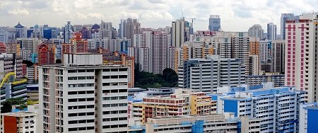 位于新加坡城市中心丹戎巴葛附近的一組政府組屋。目前,80%的新加坡人居住在比市價(jià)便宜很多的組屋內(nèi)。