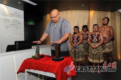 新西蘭館為玉琮的到來舉行了毛利傳統的歡迎儀式。隨后,毛利部落領袖Rikirangi Gage為兩塊寶玉祈福,并將其并排陳列于新西蘭館貴賓廳。中國玉琮和新西蘭毛利寶玉在上海世博會新西蘭館的聯合展出,凸顯了中新兩國文化的交匯相通,并通過這種特殊的形式進一步來展示新西蘭與中國友好往來的燦爛前景。
