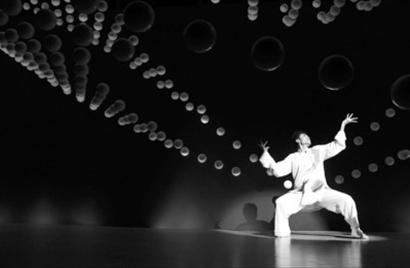 “活力矩陣”由1008個白色小球組成,每個小球直徑15厘米。這些小球均由導線牽引,整體由電腦控制,表演背景則是四季輪回。從冬天開始,經歷春夏秋冬的輪回之后,最后回到春天。離表演結束還有1分34秒時,一位太極舞者突然出現在舞臺上,長袖善舞、進退自如,讓人大呼精彩。