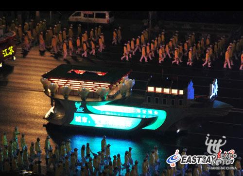 記者看到上海彩車位列第九號(hào)彩車出場(chǎng)。彩車的整體架構(gòu)是一艘豪華游輪,在艦艏部分,“上海”兩個(gè)大字清晰可見,一大會(huì)址與世博中國(guó)館構(gòu)成了彩車的主體,世博中國(guó)館的模型被市花白玉蘭圍繞,簡(jiǎn)潔中不失大方。在彩車的右側(cè),LED顯示屏打出了上海世博會(huì)的標(biāo)語(yǔ):“城市,讓生活更美好”,表達(dá)了歡迎海內(nèi)外各方朋友來(lái)上海參加世博的熱情。