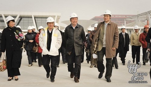上海市人大代表年終視察活動來到世博園內在建的“中華美食街”