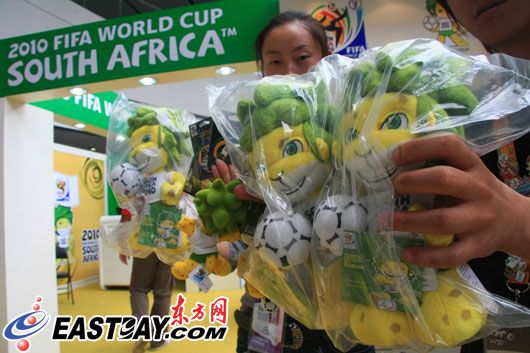 從昨天開始,世博園內(nèi)唯一一家南非世界杯特許商品銷售點(diǎn)正式營業(yè)。扎庫米毛絨玩具、32強(qiáng)徽章套裝、小型合金大力神杯……近百種世界杯商品在世博抽最北段的地下二層區(qū)域開售。記者今天走訪了幾家世博會特許商品銷售點(diǎn)發(fā)現(xiàn),扎庫米的魅力指數(shù)還是稍稍低于海寶。