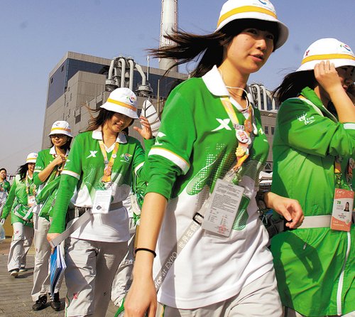 盛夏的世博園,站在路上不需5分鐘就會汗流浹背。每名志愿者都在不;卮鹩慰吞釂,烈日下始終笑臉相對。這些制服呈綠白兩色、昵稱“小白菜”的志愿者們,正在成為世博園里最可愛的人。上海世博局黨委副書記許偉國透露,“現在,一名游客平均接受志愿者服務10次。世博園已經離不開志愿者,各處都在要求增援呢!”
