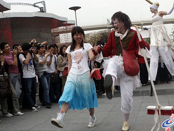 世博園里“奇人”上演行為藝術