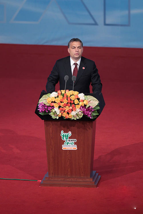 10月31日,匈牙利總理歐爾班在上海世博會高峰論壇全體大會上發表主旨演講。新華社記者邢廣利攝
