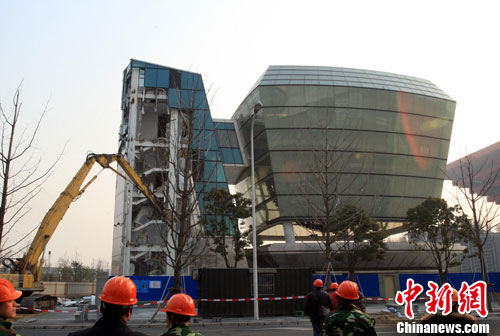 1月9日上午,上海世博會臺灣館開始拆除,整個工程約十多天。中新社記者 潘索菲 攝