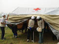 臺灣紅十字組織醫(yī)療隊在搭建醫(yī)療帳篷