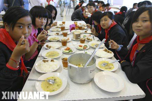7月17日,在俄羅斯符拉迪沃斯托克市,災(zāi)區(qū)中小學(xué)生在享用她們抵達(dá)俄羅斯后的第一頓美餐。當(dāng)日,赴俄羅斯療養(yǎng)的364名四川地震災(zāi)區(qū)中小學(xué)生從北京、成都兩地抵達(dá)俄羅斯符拉迪沃斯托克市,其中91名在北京首都機(jī)場(chǎng)乘坐國(guó)航包機(jī)的學(xué)生首批到達(dá)。療養(yǎng)團(tuán)的所有成員將入住符拉迪沃斯托克市的“海洋”全俄兒童中心,開始為期20天的療養(yǎng)。 新華社記者鄭悅攝