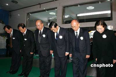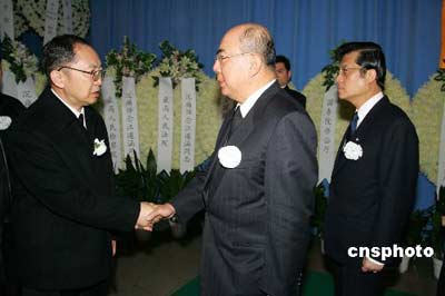 十二月三十日,海峽兩岸關系協會會長汪道涵遺體告別儀式在上海舉行。中國國民黨副主席吳伯雄代表國民黨及黨主席馬英九和代表國民黨大陸事務部及國民黨榮譽主席連戰的張榮恭等一同前往上海吊唁。作者:潘索菲