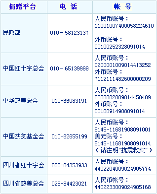 民政部公告汶川地震抗震救災捐贈款物及使用情況