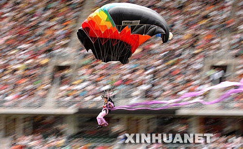 7月2日,解放軍八一跳傘隊(duì)隊(duì)員在表演。當(dāng)日,“雄鷹翱翔慶回歸”――解放軍八一跳傘隊(duì)表演在香港大球場舉行。新華社記者 呂小煒攝