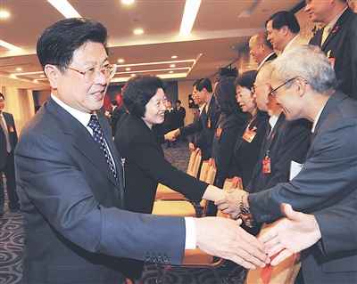 中工網(wǎng)北京10月16日電(記者王嬌萍 鄭莉)中共中央政治局委員、全國人大常委會副委員長、中華全國總工會主席王兆國,今天晚上在中國職工之家會見了應(yīng)邀參加中國工會第十五次全國代表大會的香港、澳門工會來賓團(tuán),并代表中華全國總工會向大家的到來表示熱烈歡迎。