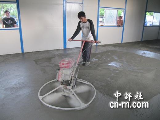 活動板房昨天下午進行內部整平工作。來源:中評網