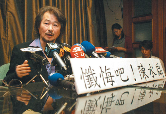 施明德召開記者會,呼吁陳水扁懺悔。圖:臺灣《聯合晚報》
