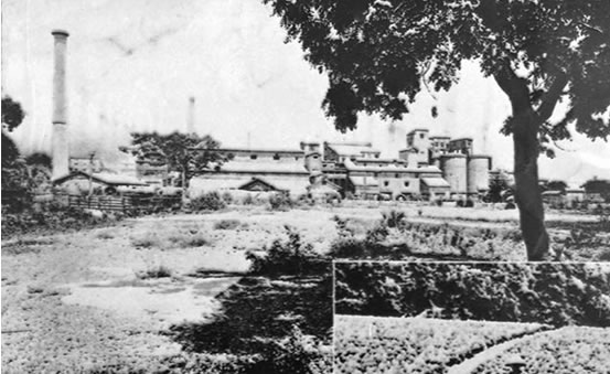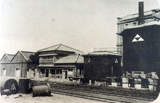 日本統治臺灣時期的四大制糖會社之一的鹽水港制糖株式會社附設酒精工廠,興建于大正五年(1916年),位于今日之鹽埕區(已拆遷)。糖蜜是蔗糖生產過程中的副產品,經過發酵后可提煉酒精,所以大部分制糖工廠都會附設酒精工廠。攝影年代約在昭和初期(1925),攝影者不詳。