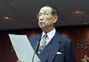 辜振甫:字公亮,1917年1月6日生,臺灣彰化縣人,祖籍福建省惠安縣。1940年畢業于臺北大學政治學系。后到日本"帝國大學"(東京大學前身)做財政及工商管理研究。1964年臺"國防研究院"第六期結業。1975年獲韓國高麗大學榮譽經濟學博士學位。1992年5月獲美國賓夕法尼亞大學榮譽法學博士