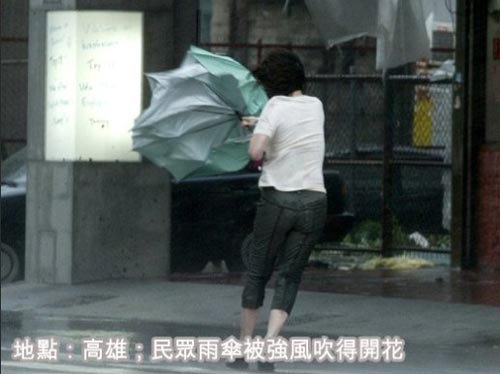 高雄,民眾雨傘被強風吹得開花。來源:臺灣《聯合報》