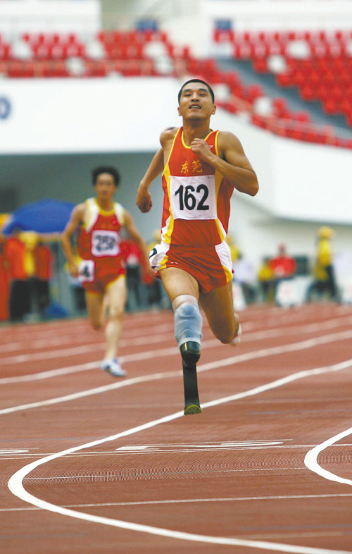 幸運的是,賈天雷剛剛去北京安裝了新的假肢。他的右膝蓋以下,重裝了更加輕便、彈力也更出色的假肢。因而現在雖然還處于適應期,但賈天雷對比賽很有信心。“我期望100米能進前三,我也相信自己的實力。希望能取得好成績,回報東莞市殘聯,回報東莞人民對我的恩情。”