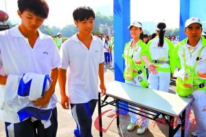 昨日上午9時(shí)40分左右,記者在東莞體育館門口看到了數(shù)百名學(xué)生排成的長(zhǎng)隊(duì)。據(jù)帶隊(duì)老師介紹,這些身著校服的學(xué)生是今早觀眾入場(chǎng)演練的“主角”——模擬觀眾。據(jù)介紹,這些模擬觀眾都是來(lái)自南城職業(yè)中學(xué)的學(xué)生。“大約有500人左右。”南城職中帶隊(duì)負(fù)責(zé)的楊老師告訴記者。