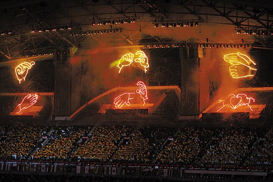 據了解,開幕式當晚,當場內手語主持人用手語打出“媽媽我愛你”、“朋友我愛你”、“世界我愛你”時,網幕焰火將在夜空中打出“生命”、“陽光”、“關愛”三組巨型手語圖案。作為首個手語煙花表演,這個獨特的創意來自哪里?黃剛告訴記者:“‘生命陽光,與愛同在’的理念來自胡錦濤總書記提出的‘讓關愛的陽光照亮每一位殘疾人的心靈’指示精神。說起手語,大家都會想起殘疾人,但是一般人對手語并不太了解,我希望這個煙花能夠激發人們對手語的好奇心,去了解手語,并關注殘疾人,進而學會關愛殘疾人。”