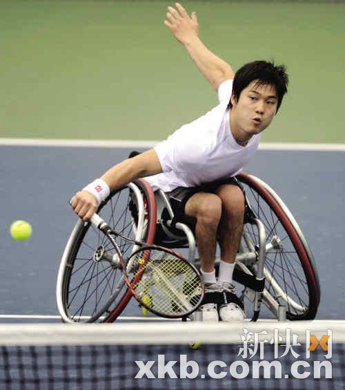 輪椅網球運動員一說起他,就會豎起大拇指;志愿者一提到他,就會激動地跳起來!他就是本屆亞殘運會輪椅網球賽場上最耀眼的明星——輪椅網球世界排名第一、連續四年蟬聯年度總冠軍、有輪椅網球界“費德勒”之稱的日本26歲輪椅網球男選手國枝慎吾。溫暖的笑容、親切的交談,接受記者采訪時,國枝慎吾就像鄰家男孩。