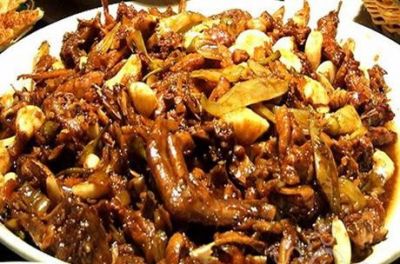做檸檬鴨用料很講究,選的鴨子是1.5公斤左右的正宗谷糠喂大的土鴨或北京鴨。配料是陳年腌制的檸檬,另外還有酸蕎頭、酸辣椒、酸梅、豆腐乳、白糖、黃酒和鮮姜等。其味酸辣適宜,清新爽口,香而不膩,是一道極其開胃的菜。看其外觀,冒著油汁,金黃誘人;聞其香,檸檬與鴨肉香飄撲鼻;品其味,檸檬的酸香中透著梅子的甜味,微辣中藏著鴨肉的細(xì)膩。即便是吃到了配料,也覺得美味無比。鴨肉可以自己選擇,西洋鴨25元/斤,土鴨18元/斤,北京鴨15元/斤。大眾完全吃的起,追求高品位、高營(yíng)養(yǎng)的朋友來到這也不會(huì)失望。