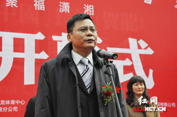 瀟湘晨報社總編輯劉劍宣布年貨博覽會開幕。