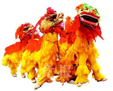 過去北京不允許舞龍,因為龍代表皇權(quán),只能宮廷中太監(jiān)舞給皇帝玩,事先必須有特赦才可進行。宮中舞的是“火龍”,龍體透明,內(nèi)置點燃的油燈,在黃昏或夜晚時進行,蔚為壯觀。舞獅在北京比較普遍,但北京舞獅不像南獅,沒有過多的雜技技巧,主要講究威武莊嚴。初期很簡單,是一塊布,獅頭用泥巴或紙漿做成,非常丑陋,幾乎全是禿的。而南獅相對精細,但造型更像貓,沒有獅子的威風。