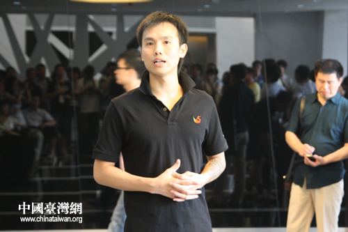 雨林木風總經(jīng)理賴霖楓向記者們介紹企業(yè)情況(中國臺灣網(wǎng) 趙輝 攝)