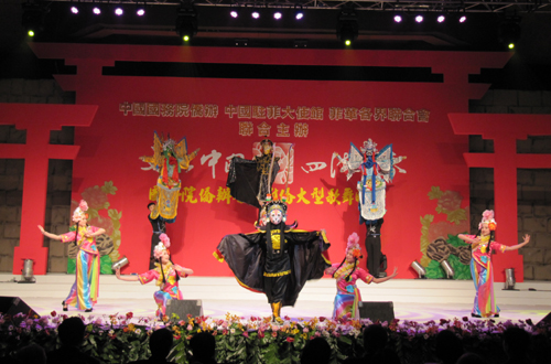 這是國務院僑辦和中國海外交流協會“文化中國·四海同春”2010年春節赴菲律賓藝術小組在演出,只見臺下掌聲不斷,臺上精彩紛呈:《滾燈》語言詼諧,情節幽默,將川北燈戲的民間生活情趣描繪得淋漓盡致。《變臉》是川劇中神奇美麗的絕技,大木偶變臉更是精彩絕倫,令人嘆為觀止。