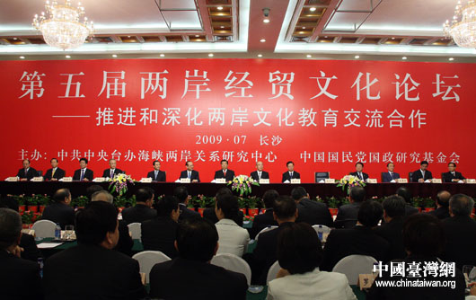 本屆論壇由中共中央臺辦海研中心與中國國民黨國政研究基金會共同舉辦,主題為“推進和深化兩岸文化教育交流合作”。國共兩黨有關方面負責人、臺灣其他黨派、兩岸文化界、教育界、經貿界等各界人士、專家學者五百余人出席論壇。兩岸文化、教育主管部門人士也作為特邀嘉賓和特邀專家出席,大陸有關部門負責人并宣布了一些促進兩岸交流的新措施。(記者 鐘寶華 張弛)