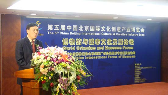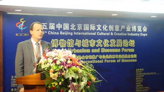 第五屆文博會(huì)——2010博物館與城市發(fā)展論壇11月5日上午在北京新聞大廈舉辦,聯(lián)合國(guó)教科文組織國(guó)際博物館協(xié)會(huì)MPR主席Paal Mork、中國(guó)博物館協(xié)會(huì)市場(chǎng)推廣與公共關(guān)系專業(yè)委員會(huì)主席 閆宏斌等來(lái)自歐洲、美洲、澳洲、非洲、亞太、港澳臺(tái)地區(qū)及中國(guó)大陸的博物館界、學(xué)術(shù)界、企業(yè)界的專家學(xué)者、社會(huì)人士參加。文博會(huì)組委會(huì)副秘書(shū)長(zhǎng)、北京市文物局局長(zhǎng)孔繁峙、文博會(huì)組委會(huì)辦公室副主任、北京市貿(mào)促會(huì)副會(huì)長(zhǎng)儲(chǔ)祥銀等到會(huì)致辭。