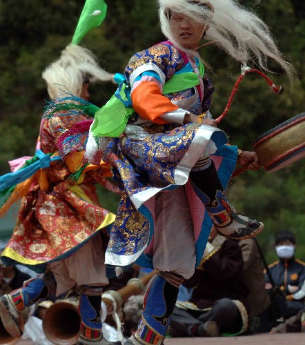 資料圖片:2007年5月28日,在“藏醫藥文化節”上,當地居民在進行民俗表演。(李文)(圖片來源:新華網)