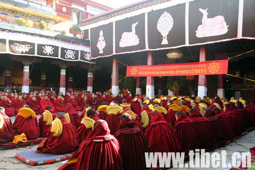 西藏自治區副主席多托代表自治區人民政府,向獲得2009年度格西拉讓巴學位的考僧表示祝賀,并向他們贈送了五彩緞、袈裟、獎金等。西藏政協副主席、中國佛教協會西藏分會會長珠康·土登克珠,向獲得格西拉讓巴學位的考僧頒發了格西拉讓巴學位證書。西藏自治區民宗委負責人,代表自治區人民政府向參加立宗活動的全體僧人提供齋飯并發放布施。